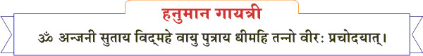 | ॐ अन्जनी सुताय विद्महे वायु पुत्राय धीमहि तन्नो वीरः प्रचोदयात्। |