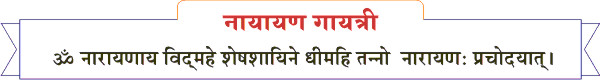 | ॐ नारायणाय विद्महे शेषशायिने धीमहि तन्नो नारायणः प्रचोदयात्। |