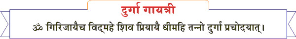 | ॐ गिरिजायैच विद्महे शिव प्रियायै धीमहि तन्नो दुर्गा प्रचोदयात्। |