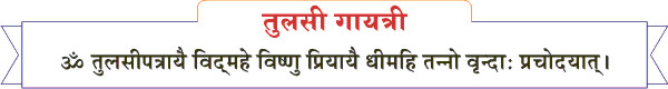 | ॐ तुलसीपत्रायै विद्महे विष्णु प्रियायै धीमहि तन्नो वृद्नाः प्रचोदयात्। |